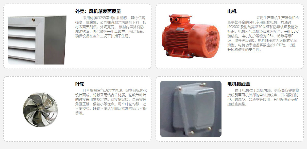 1.3.风机根据使用环境不同要求,风机可制成DFBZ型防爆轴流风机,可适用于非腐蚀的含有易燃、易爆气体的场所,防爆等级为EXdⅡBT4。